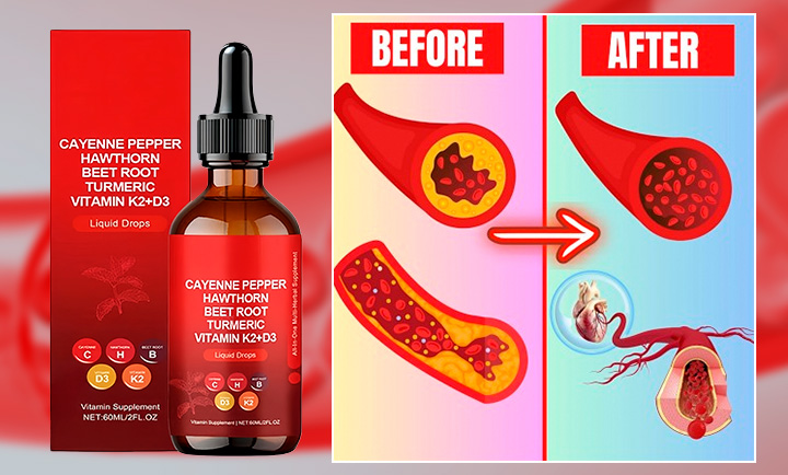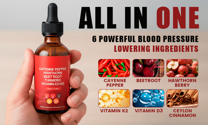 This drop formula combines cayenne pepper and hawthorn as powerful vasodilators that rapidly open blood vessels and improve circulation while beet root further enhances nitric oxide production to sustain healthy blood flow and lower pressure; turmeric's curcumin simultaneously fights inflammation and prevents plaque formation; and vitamin K2 paired with D3 activates proteins that remove calcium deposits from arteries and redirect it to bones, collectively clearing clogged vessels, preventing new blockages, and restoring flexible, healthy blood flow.